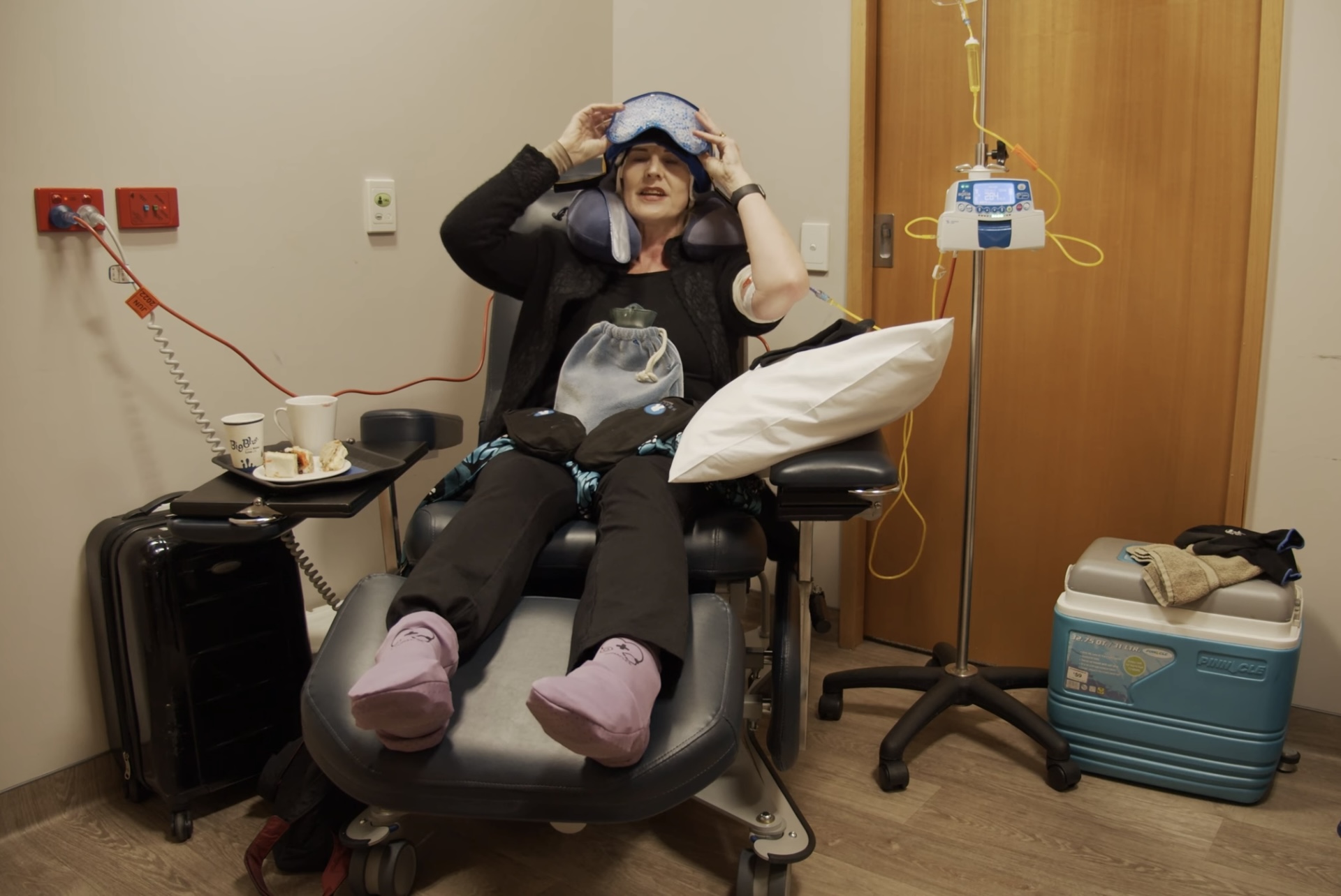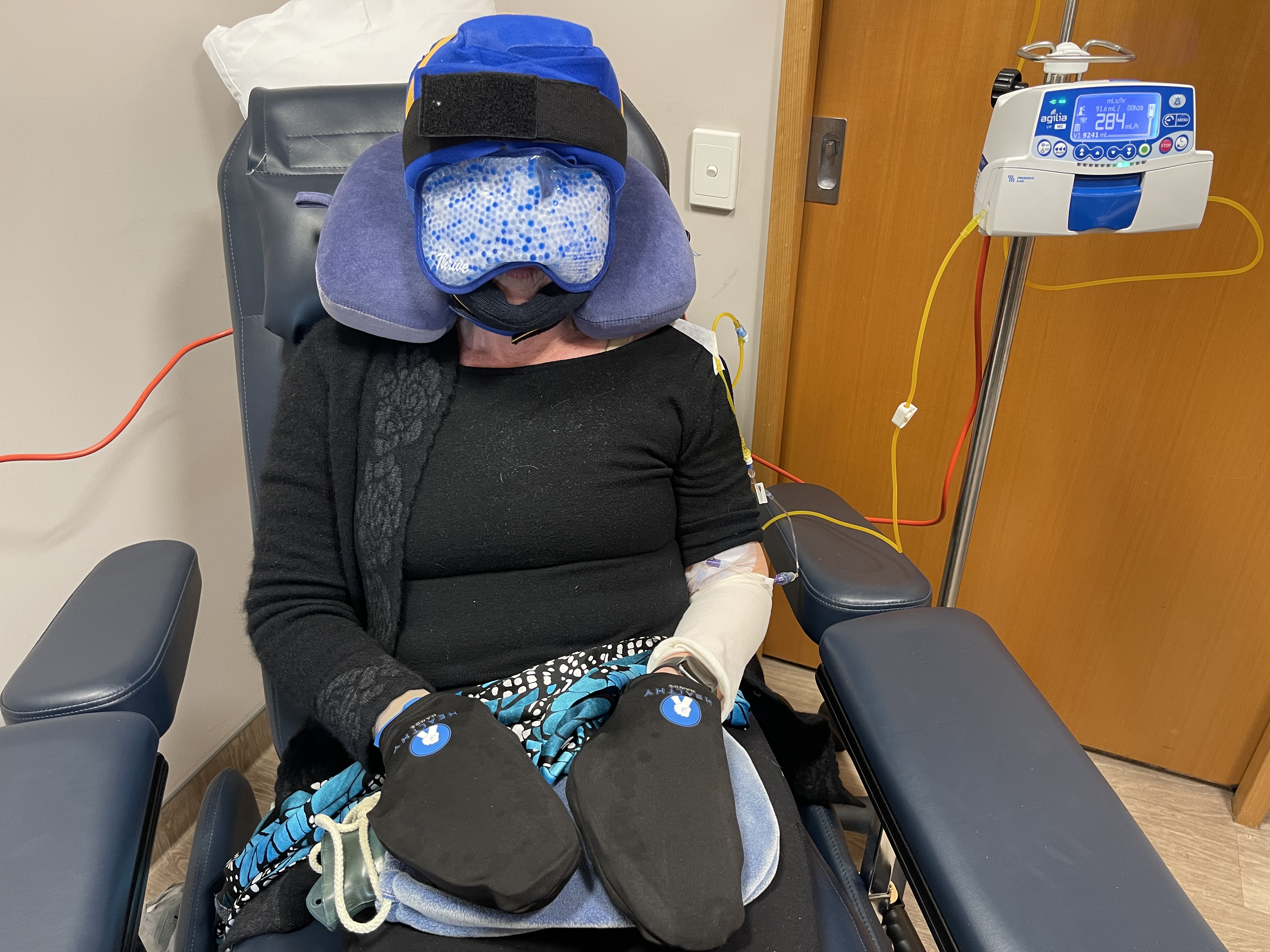 During my chemotherapy with TC (docetaxel and cyclophosphamide) I iced my hands and feet to prevent painful docetaxel caused nail changes and hopefully to reduce the risk of peripheral neuropathy.